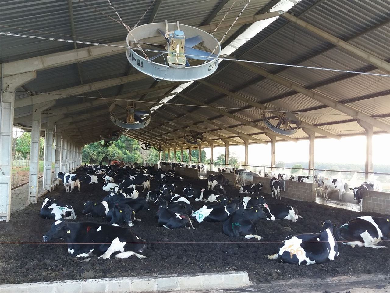 Outro ponto importante no manejo das camas foi o reposicionamento dos ventiladores, que incialmente foram instalados como num free-stall, mas houve a necessidade de reposicioná-los de forma mais direcionada para a cama, promovendo sua maior secagem.